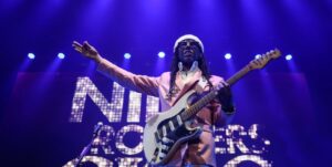 (Ficha Técnica – Nile Rodgers en Argentina (tercera visita al país después de octubre 2009 en el Club Ciudad y septiembre 2017 con dos fechas en el teatro Gran Rex) en el Estadio Movistar Arena (20 de Mayo de 2025) Músicos: Nile Rodgers (guitarra líder y voz), Ralph Rolls (batería), Milton Barnes (bajo), Richard Milton (teclados y efectos), Russell Graham (teclado, guitarra y voces), Steven Jankowski (trompeta), Kenneth Gioffre (saxo) , Kimberly Davis (voces y coros) y Audrey Martellsen (voces y coros). Lista completa de canciones: 01 Le Freak (Chic song) – 02 Everybody Dance (Chic song) – 03 Dance, Dance, Dance (Yowsah, Yowsah, Yowsah) (Chic song) – 04 I Want Your Love (Chic song) – 05 I’m Coming Out / Upside Down (Diana Ross cover) – 06 He’s the Greatest Dancer / We Are Family (Sister Sledge cover) – 07 Like a Virgin / Material Girl (Madonna cover) – 08 Modern Love (David Bowie cover) – 09 Cuff It (Beyoncé cover) – 10 Get Lucky (Daft Punk cover) – 11 Lose Yourself to Dance – 12 (Daft Punk cover) – 13 Lost in Music (Sister Sledge cover) – 14 Notorious (Duran Duran cover) – 15 Soup for One / Lady (Hear Me Tonight) – 16 Thinking of You (Sister Sledge cover) (Dedicated to Bernard Edwards.) – 17 My Feet Keep Dancing (Chic song) – 18 Chic Cheer (Chic song) – 19 My Forbidden Lover (Chic song) – 20 Let’s Dance (David Bowie cover) (Started with Olé olé olé jam) – 21 Good Times / Rapper’s Delight – 22 Le Freak (Chic song)