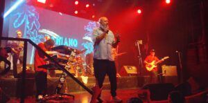 Los minutos iban pasando, la temperatura daba señales de comenzar a descender y ahí fue donde se percibió la primera novedad, cuando el Bahiano cambió el aire y empezó rápido a moverse bastante más que al comienzo. Aunque el aire acondicionado del lugar y cierta estructura de ventiladores del local ayudaba a mejorar la comodidad, en un momento la orden fue abrir las puertas que daban a la avenida Niceto Vega. Ahí no solo los músicos, sino también la totalidad de los espectadores empezaron a recibir el aire fresco que venía del exterior. Ya habían pasado “Mucha Experiencia”, “Tarde Gris”, “Waiting”, “Vamos Fugir»( Gilberto Gil), “Big Yuyo”, “Duerme negrito” y “Cerca de mí”. El cantante sentía que ese mastodonte del clima con 30 de térmica se había extinguido y llegaba el tiempo de reorientar sus reservas energéticas para poner al concierto funcionando veloz con caja de siete velocidades. Demostrando sus recursos como anfitrión y toda esa simpatía que lo caracteriza, fueron pasando con destacado impacto en la audiencia canciones como “Eso es real”, “Más cerca del cielo”, “Planes” y “La hiena”. El show se reservaba un mínimo bloque acústico, con la interpretación de “A primera vista”, ese tema de Chico César al que el ex-vocalista de “Los Pericos” le hizo un arreglo maravilloso hace 15 años.