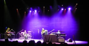 En la recta final de un concierto que tiene sentados en algunas butacas a conocidos comunicadores del mundo musical como Claudio Kleiman o Humphrey Inzillo, pero que también suma a legendarias figuras de la escena artística como León Gieco (con barbijo y protectores para sus oídos, fruto de un problema en sus cuerdas vocales y un Tinitus que lo afecta hace un prolongado tiempo en su audición) o Marcelo “Gillespie” Rodríguez (Las Pelotas), donde la banda en este gran concierto pleno de matices y climas despacha canciones como “Forty days in the realm of the bottomless eye”, “Flaming house”, “Only he one who brought the bird can make it sing” y “The Kingdom”. Basta que los músicos se corran de sus ubicaciones, anunciando la despedida para que la numerosa audiencia de inmediato haga lo propio para ovacionarlos y reclamar una composición más.